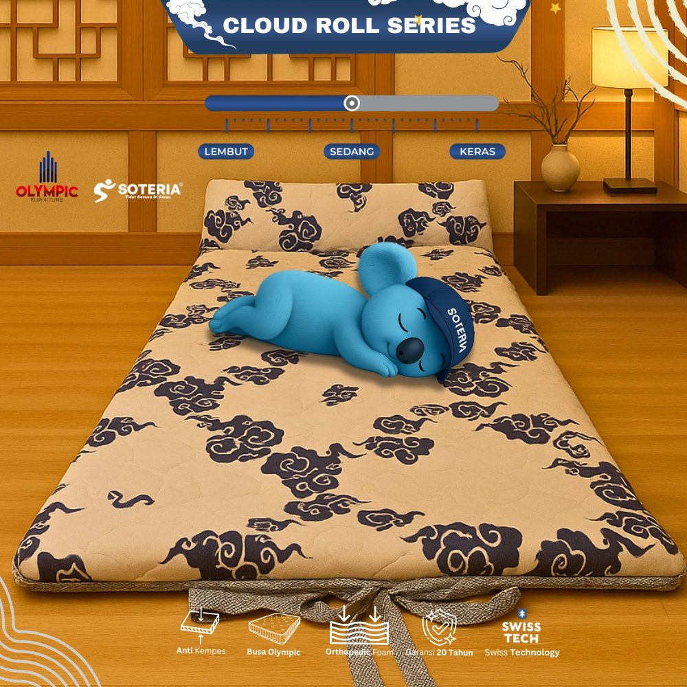 Original Olympic x Soteria Kasur Lipat Roll Busa Premium Tebal Motif Minimalis Elegan Cloud Style