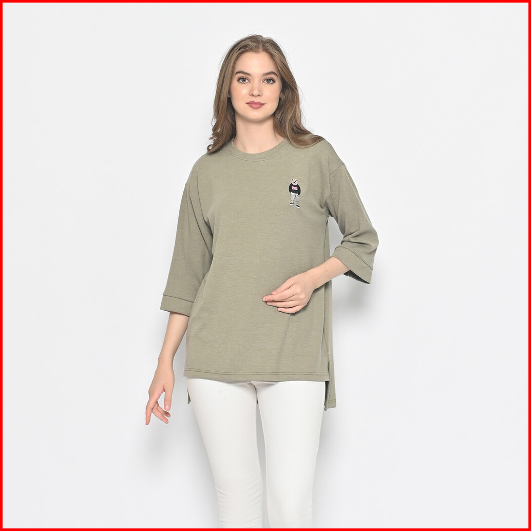 Queentin Kaos Wanita Casual 0231 Stretch Snowy Rib Knit Polos Lengan Panjang 3 4