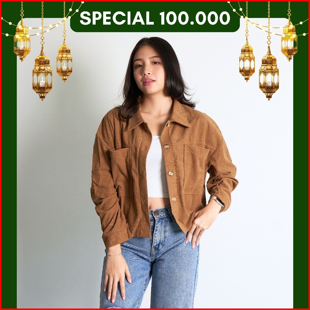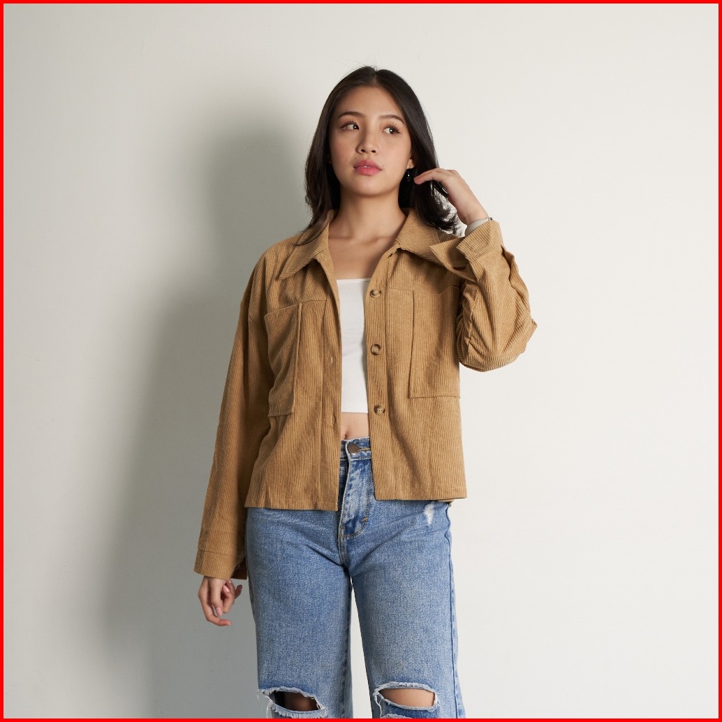 Queentin Kemeja Outer Wanita 005 Cordoray Polos Premium Lengan Panjang