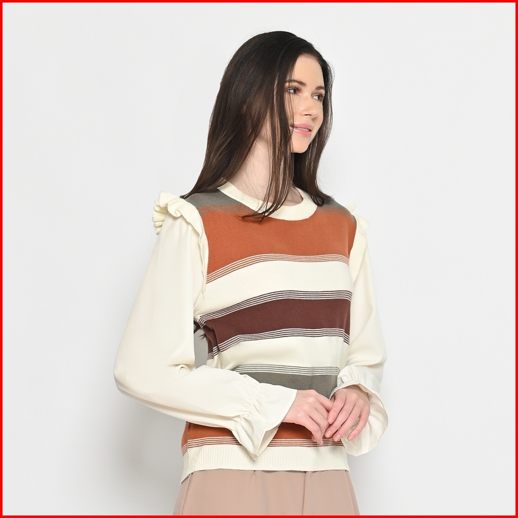 Queentin Blouse Comby Wanita 38028 Strecth Cashmere Knit Motif Salur Lengan Karet Poet Panjang