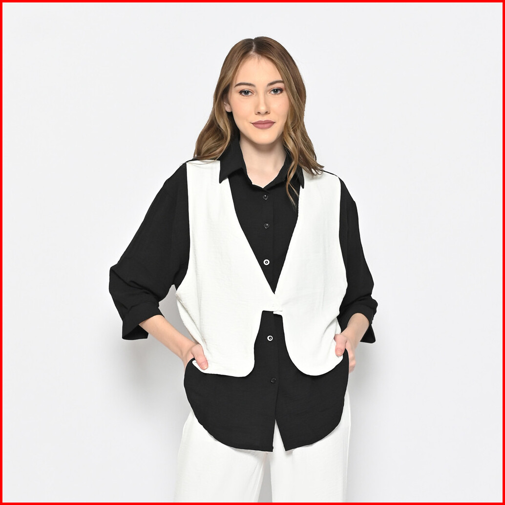 Queentin Kemeja Wanita Rompi 0210 Airflow Crinkle Polos Kombinasi Lengan Panjang 7 8