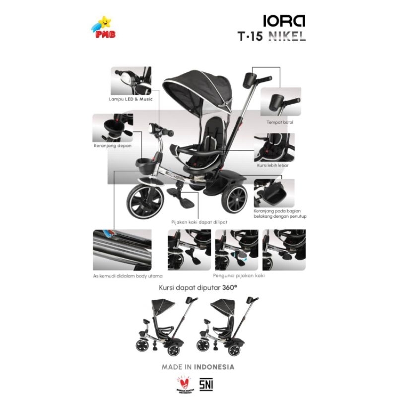 [Star] Sepeda Roda Tiga Anak PMB T15 IORA BMX Music Lampu Kids Trike Tricycle T33 T35 T36 T25 T26