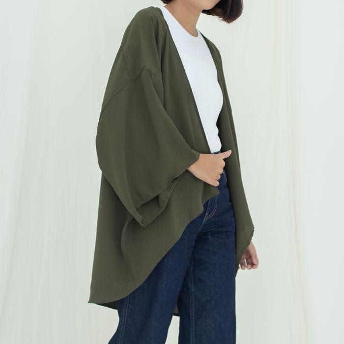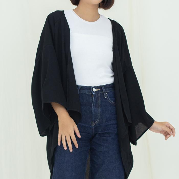 IXORA YERIN KIMONO OUTER OUTERWEAR BLAZER CARDIGAN FASHION WANITA TERKINI MERAH PANJANG ATASAN CEWEK BLACK, A