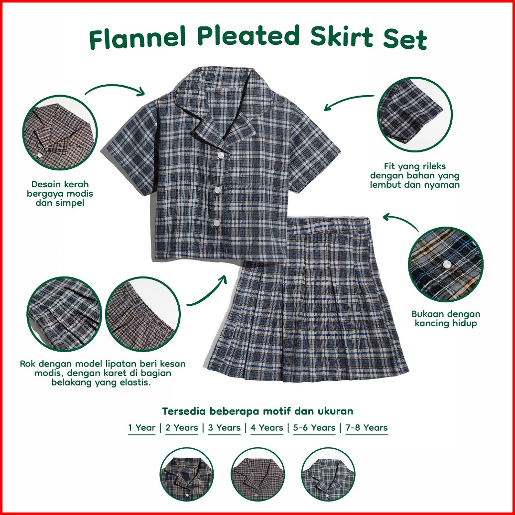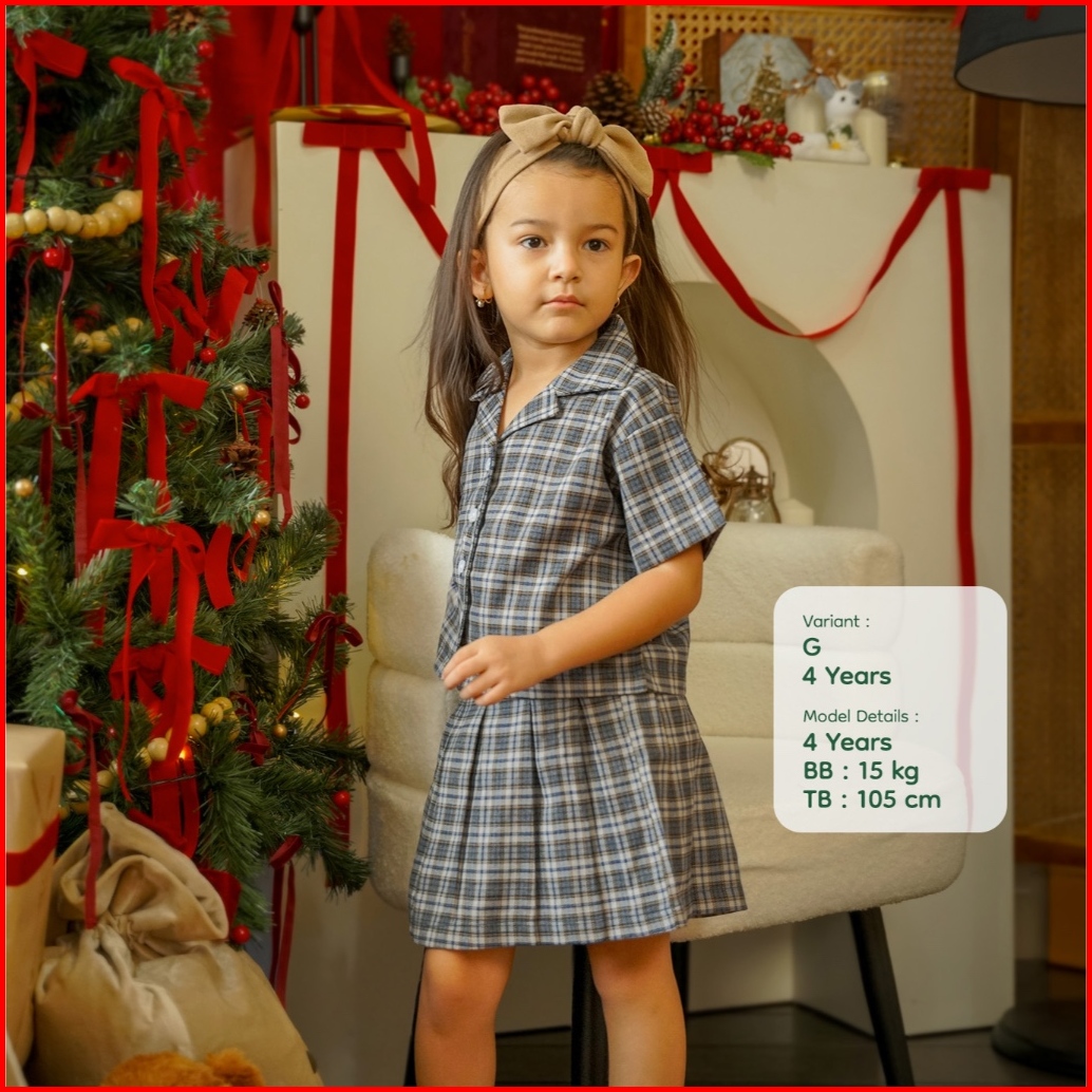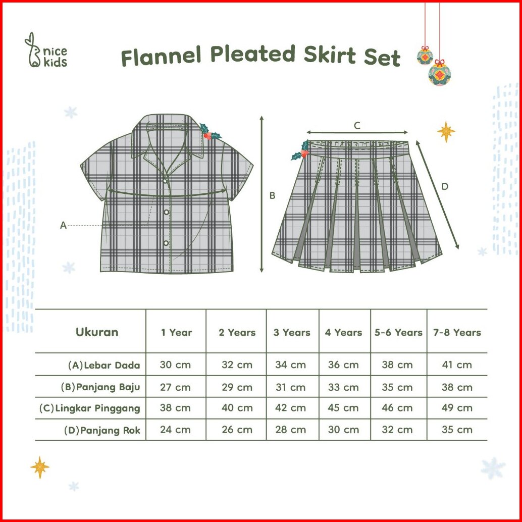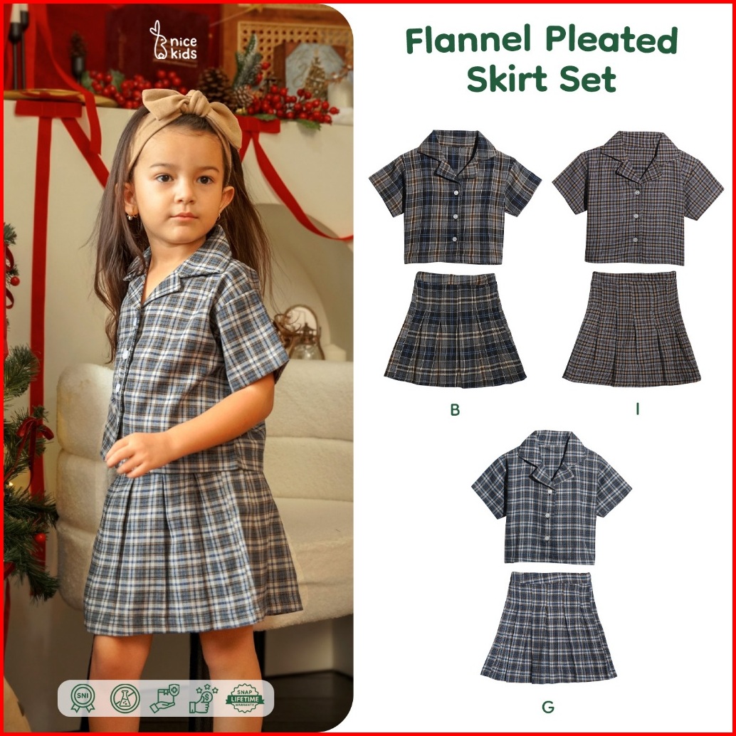 Nice Kids - Flannel Pleated Skirt Set Setelan Top And Skirt Atasan Dan Rok Anak Perempuan Motif Kotak-kotak Natal Christ