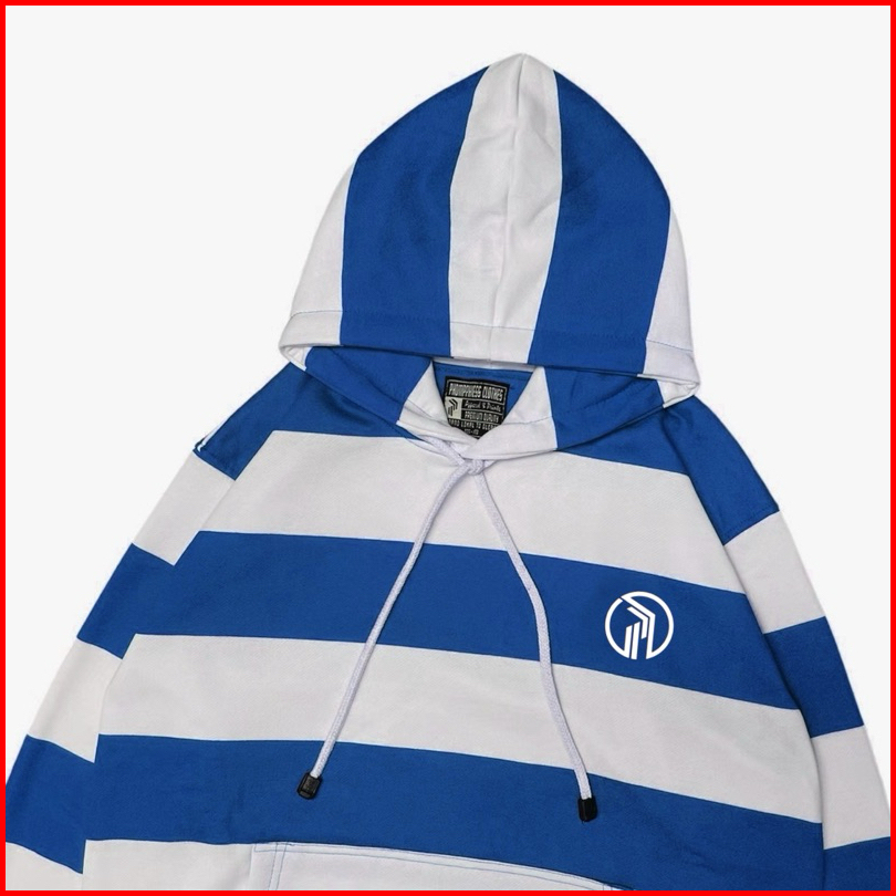 Phompphiess Sweater Hoodie Salur Merah Bata Sweater Stripe Pria Wanita