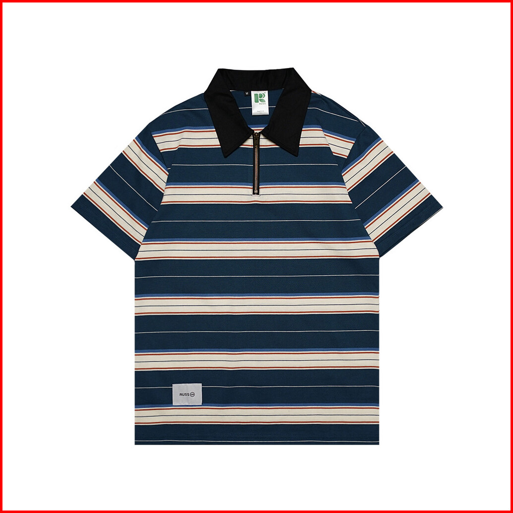 Russ Kaos Poloshirt Rugby Pria Salur Gist Blue