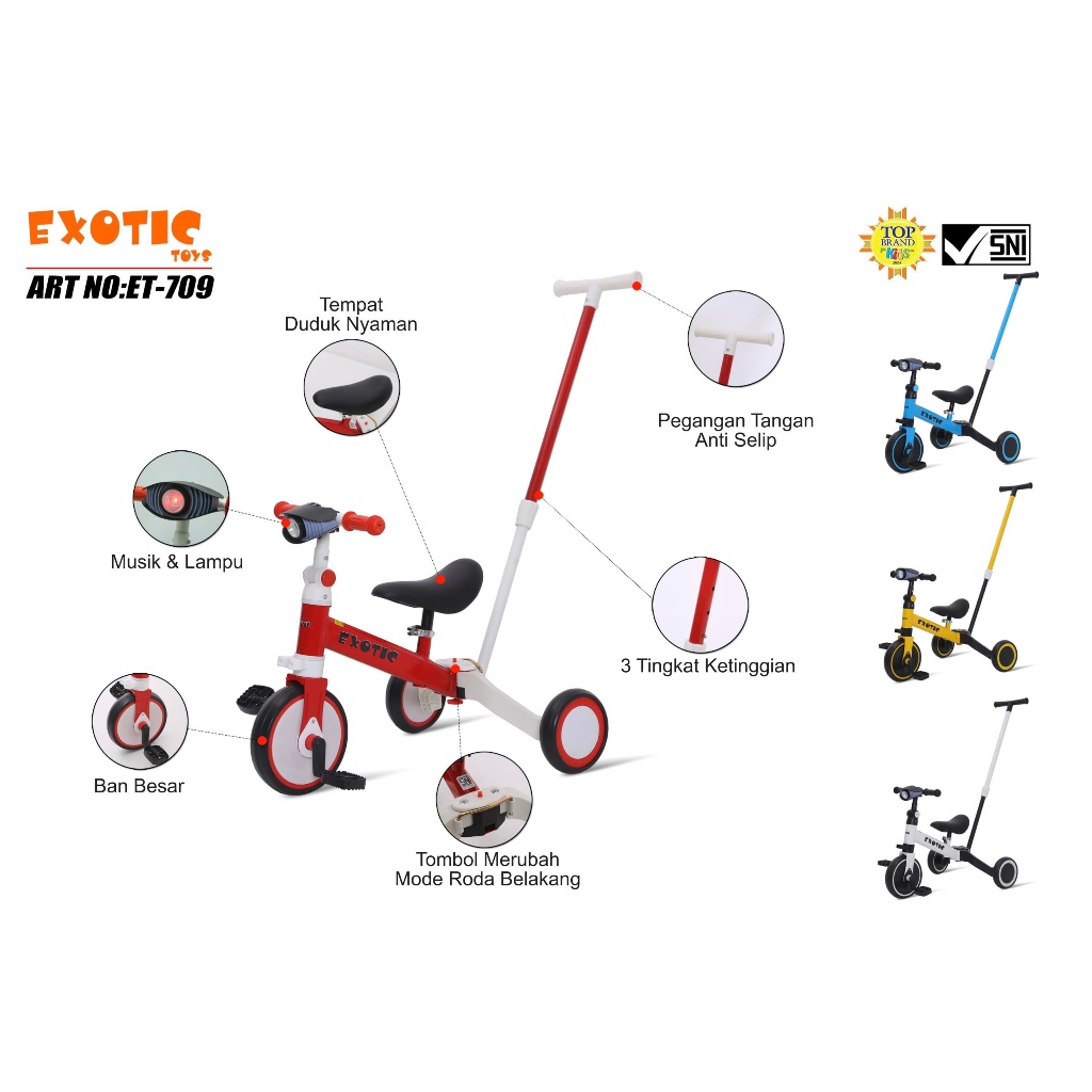 [Star] BALANCE BIKE EXOTIC ET 709 -7 ET709 NUWA T32 DORONGAN ATUR BELOK STIR 6 IN 1 SEPEDA ANAK RODA TIGA PMB