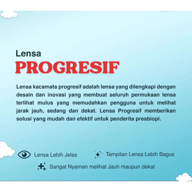 Kacamata plus progresif(baca dan jalan) laki-laki dan perempuan usia 40 sd 60 tahun ukuran +1.00-+300 bahan ringan dan lentur