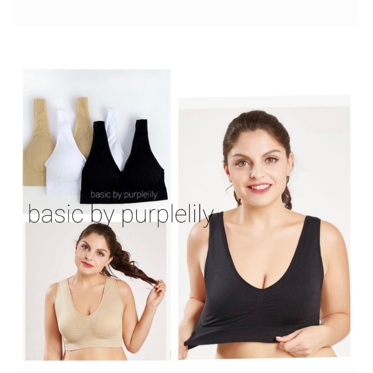 Sport Bra Wanita Big Size Tanpa Kawat Bra Jumbo Bra Olahraga Bahan Breathable Push Up Varian Basic Putih, Krem, Hitam