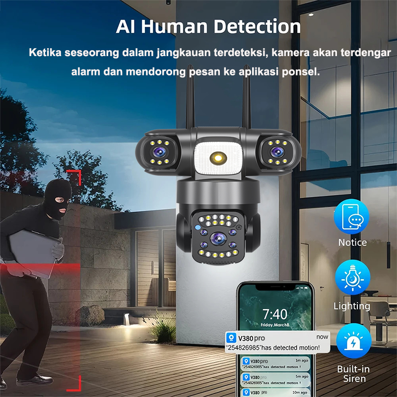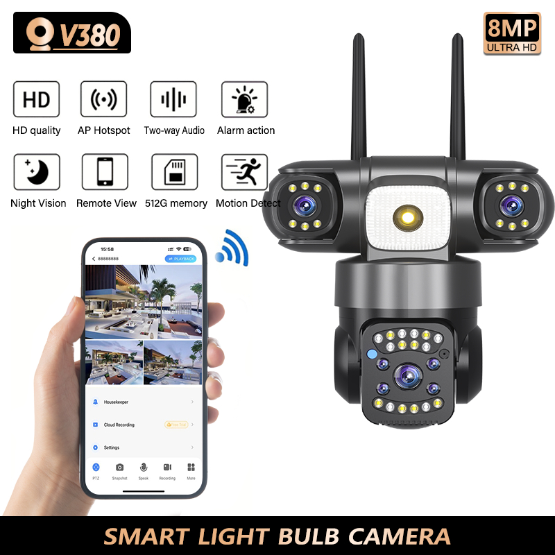 V380 pro 18MP 3 Lens Security Camera WiFi Wireless Outdoor Home Protection IP Camera Auto Tracking