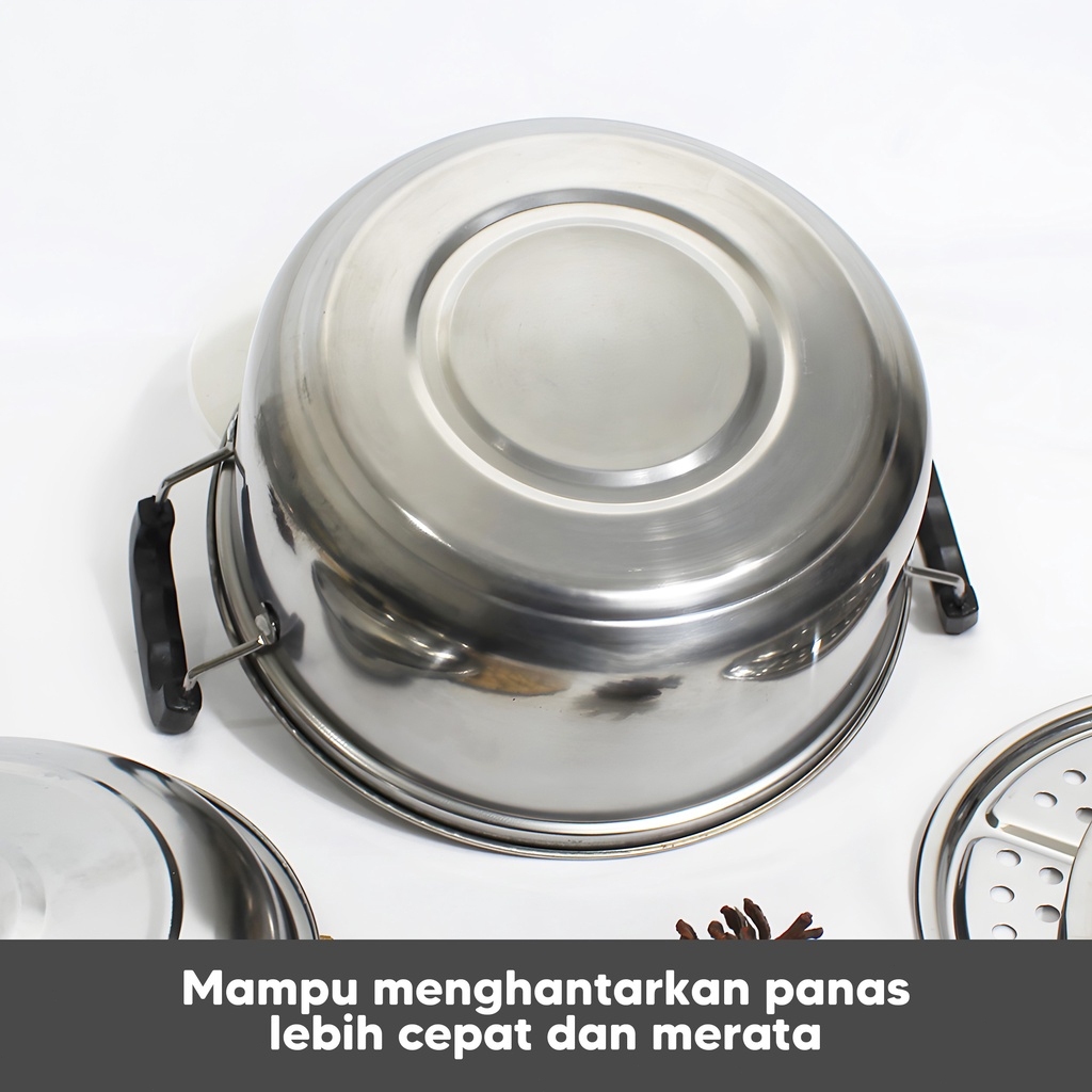 VENECO 12in1 Panci Steamer Set Stainless isi 5 pcs + 2pcs Kukusan Panci Bahan Tebal PREMIUM