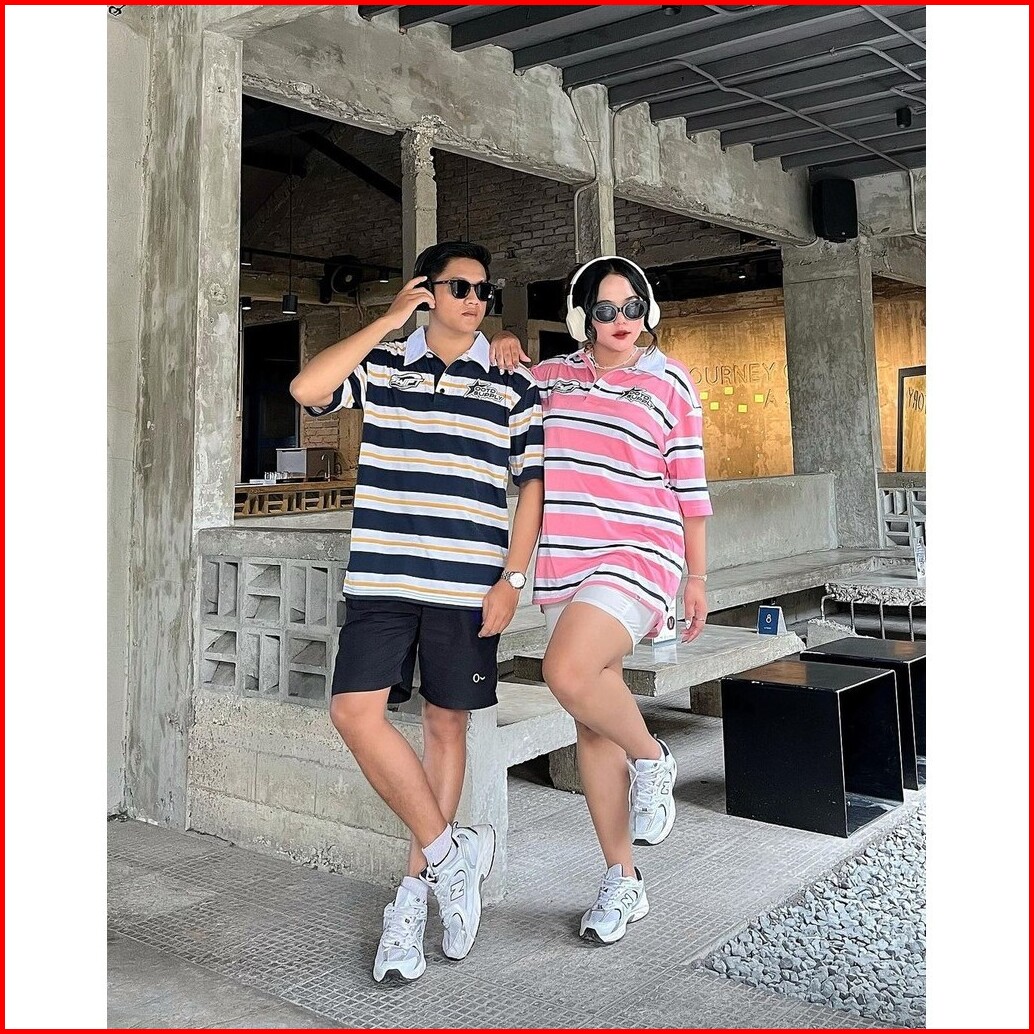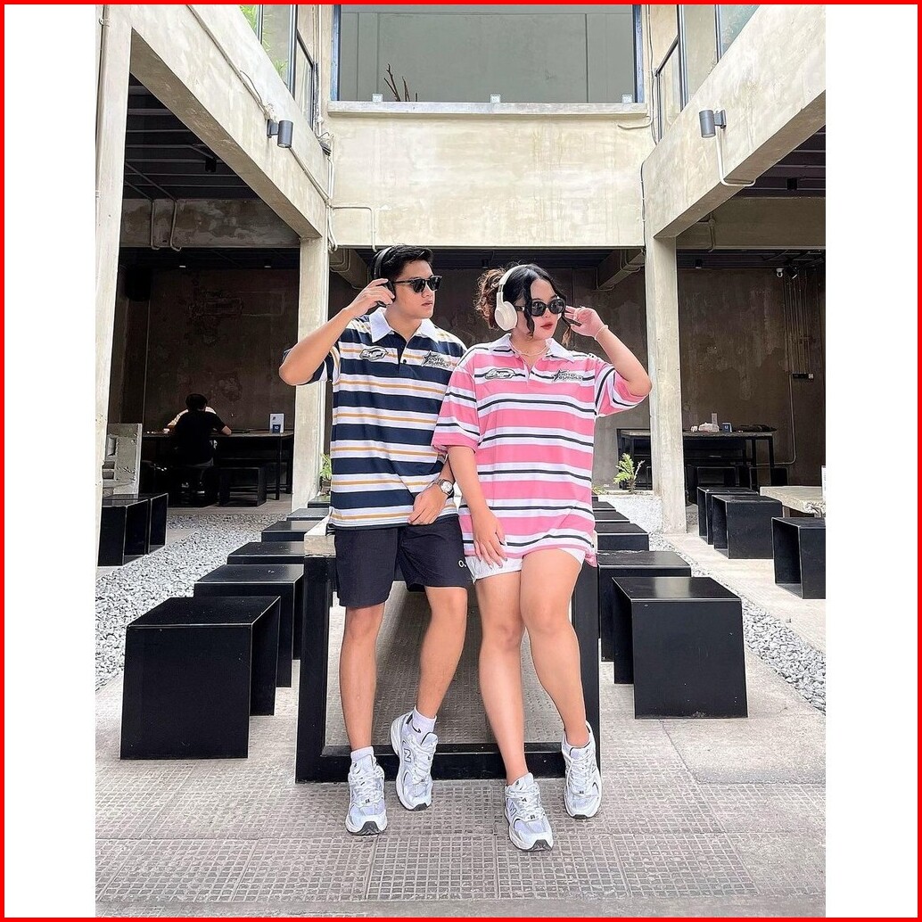 Ootdsupply Oversize Stripe Polo Shirt Swift Stripe Kaos Polo Pria Dan Wanita Ovz-pstp003