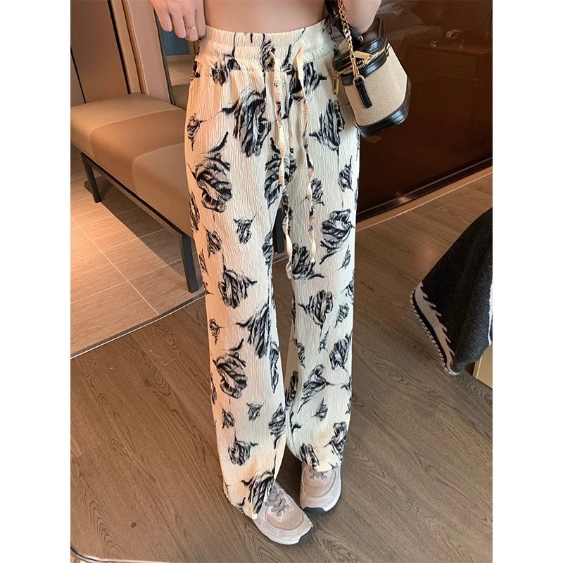 Meirong celana putih panjang wanita jumbo santai celana kulot motif cewek kekinian korean style model terbaru