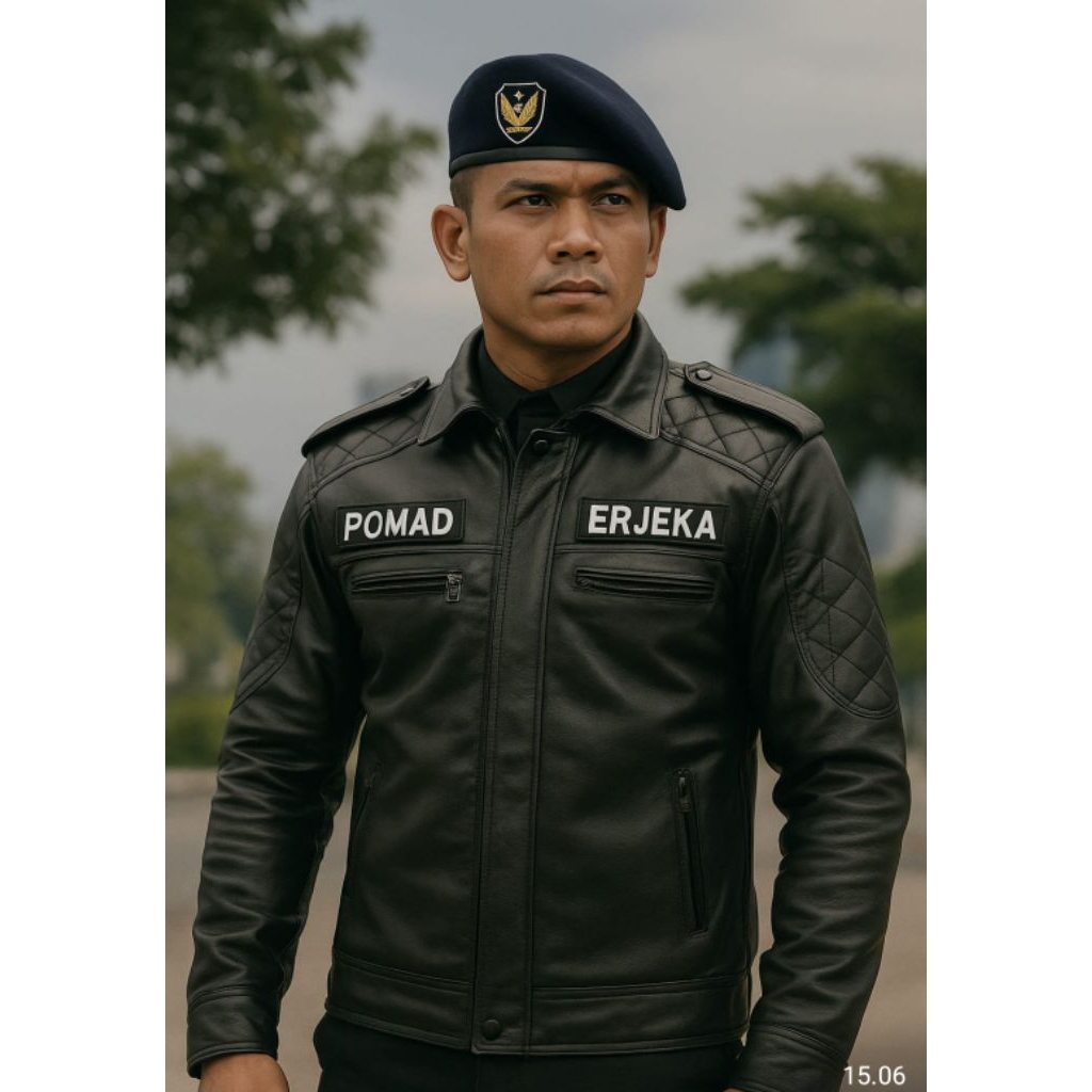 Jaket kulit asli domba Garut pria - Model militer Polisi Pomad Premium