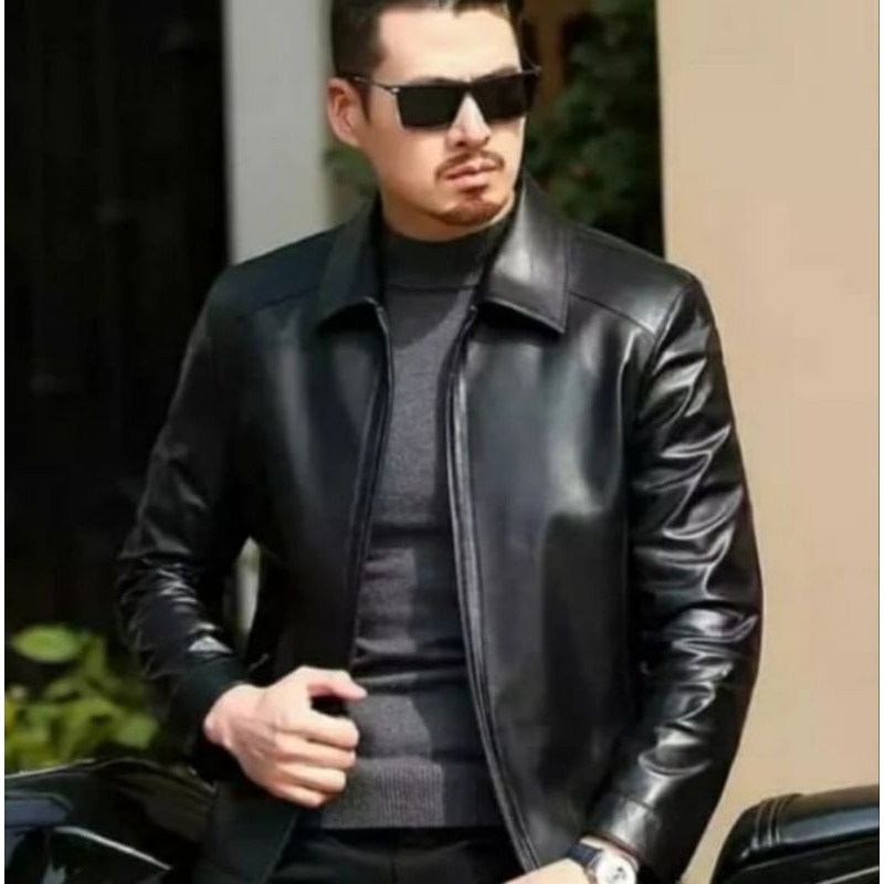 Jaket Kulit Asli Pria Model Kerah Kemeja Anti Api Anti Air New Elegant