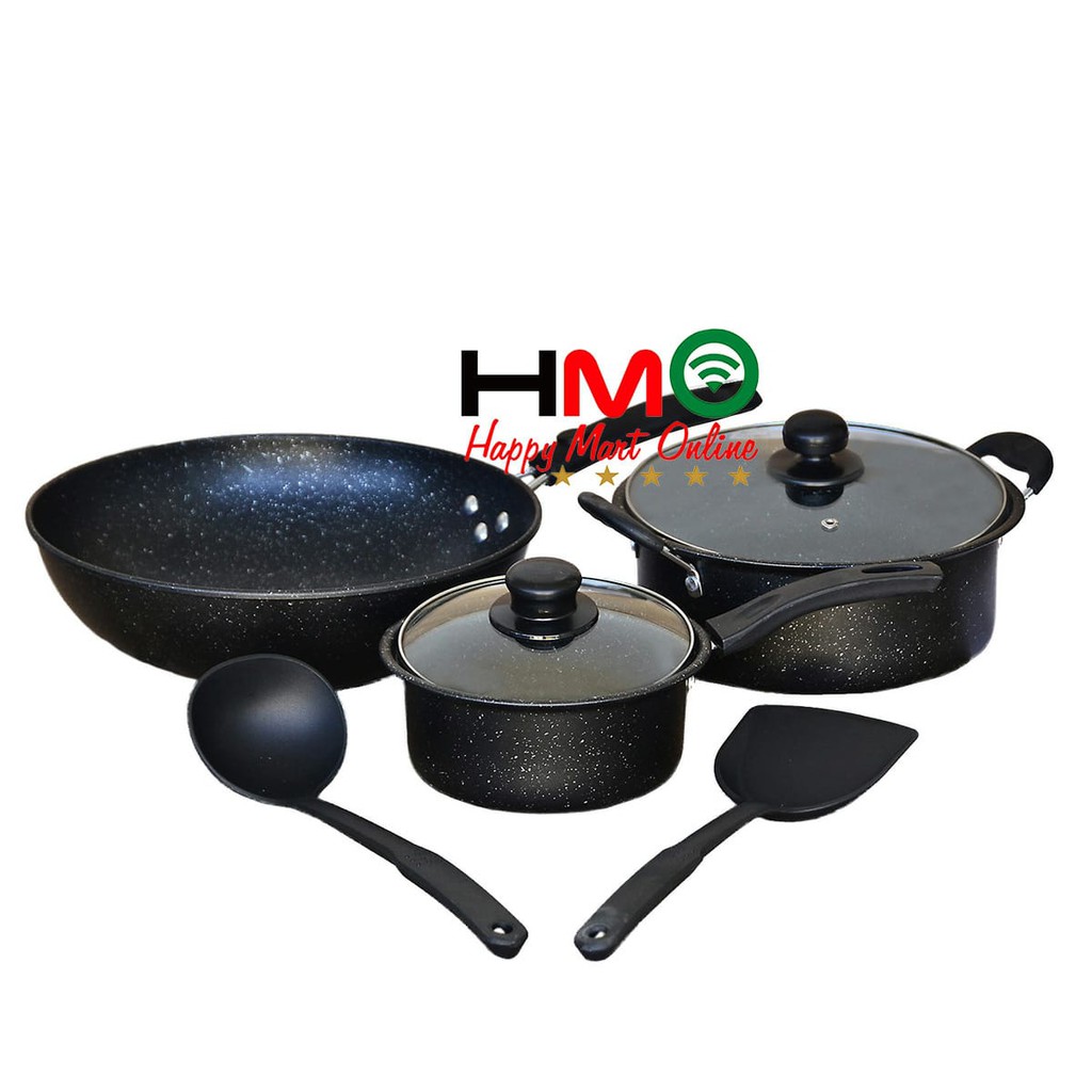 Asta Marbello Wajan Panci Marbel Set Anti Lengket Marble Cookware Set 7 Pcs Asta Marbello