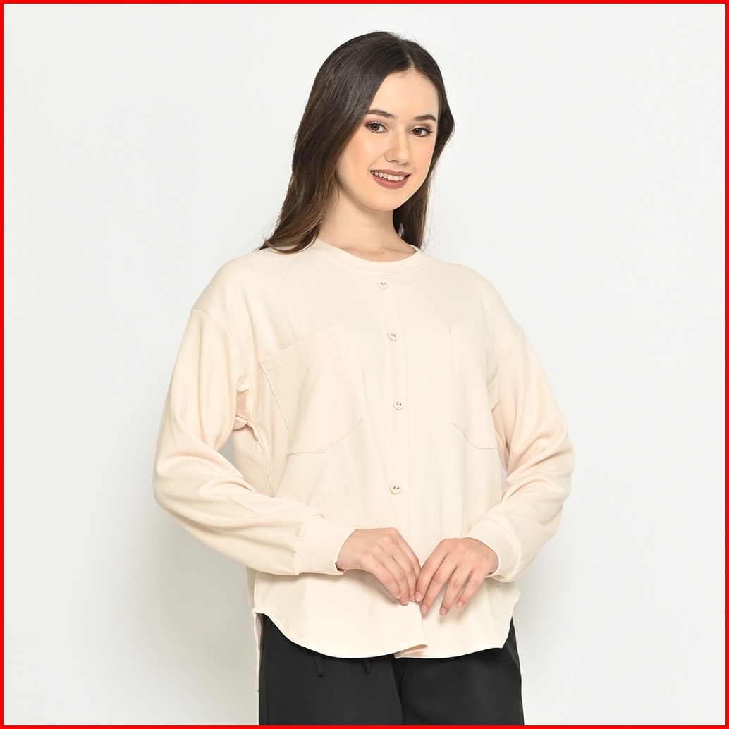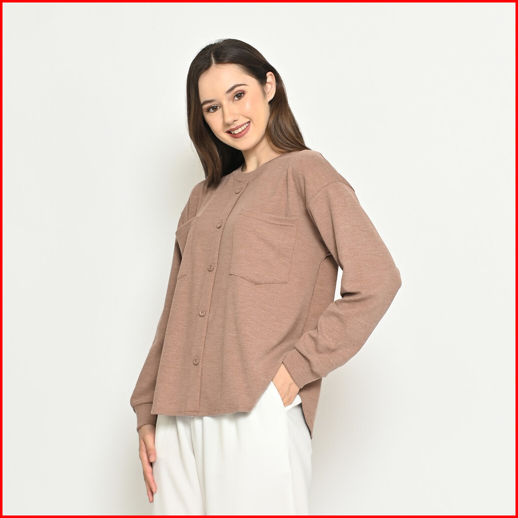Queentin Kaos Crewneck Wanita 0420 Stretch Snowy Rib Knit Polos Lengan Panjang