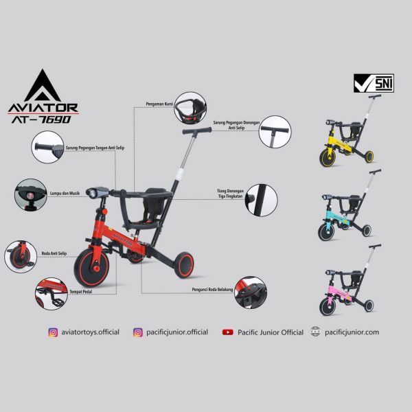 [Star] Sepeda Anak 2 Tahun Roda Tiga Tricycle Free bubble Push Balance Bike Exotic Aviator AT - 7905 7690