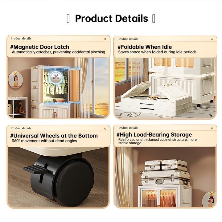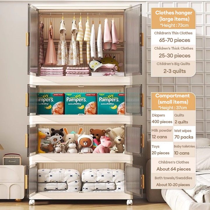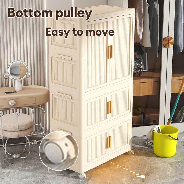 【Ekstra Besar 70/80cm】Lemari Pakaian Lemari Baju Storage Wardrobe Lemari Pakaian Plastik Dengan Roda