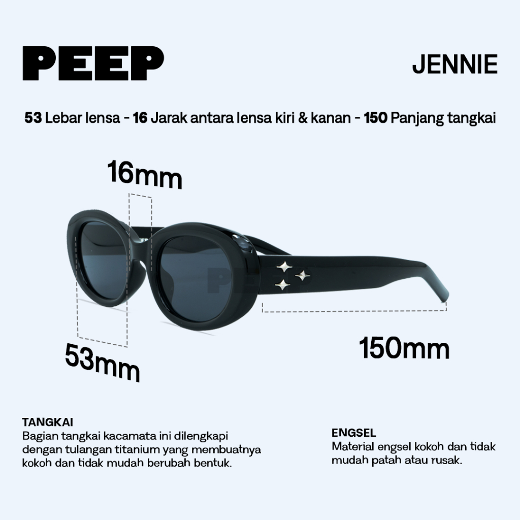 Peep Eyewear - Jennie Frame Kacamata Hitam / Sunglasses Unisex / Pria Wanita
