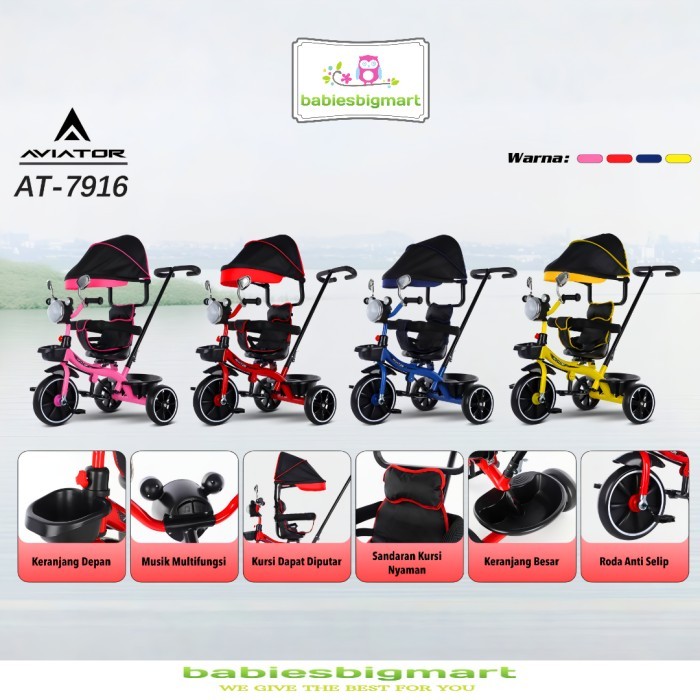 [Star] Sepeda Anak Roda 3 Tiga Tricycle AVIATOR AT 7916 Ada Musik Kursi Bisa putar