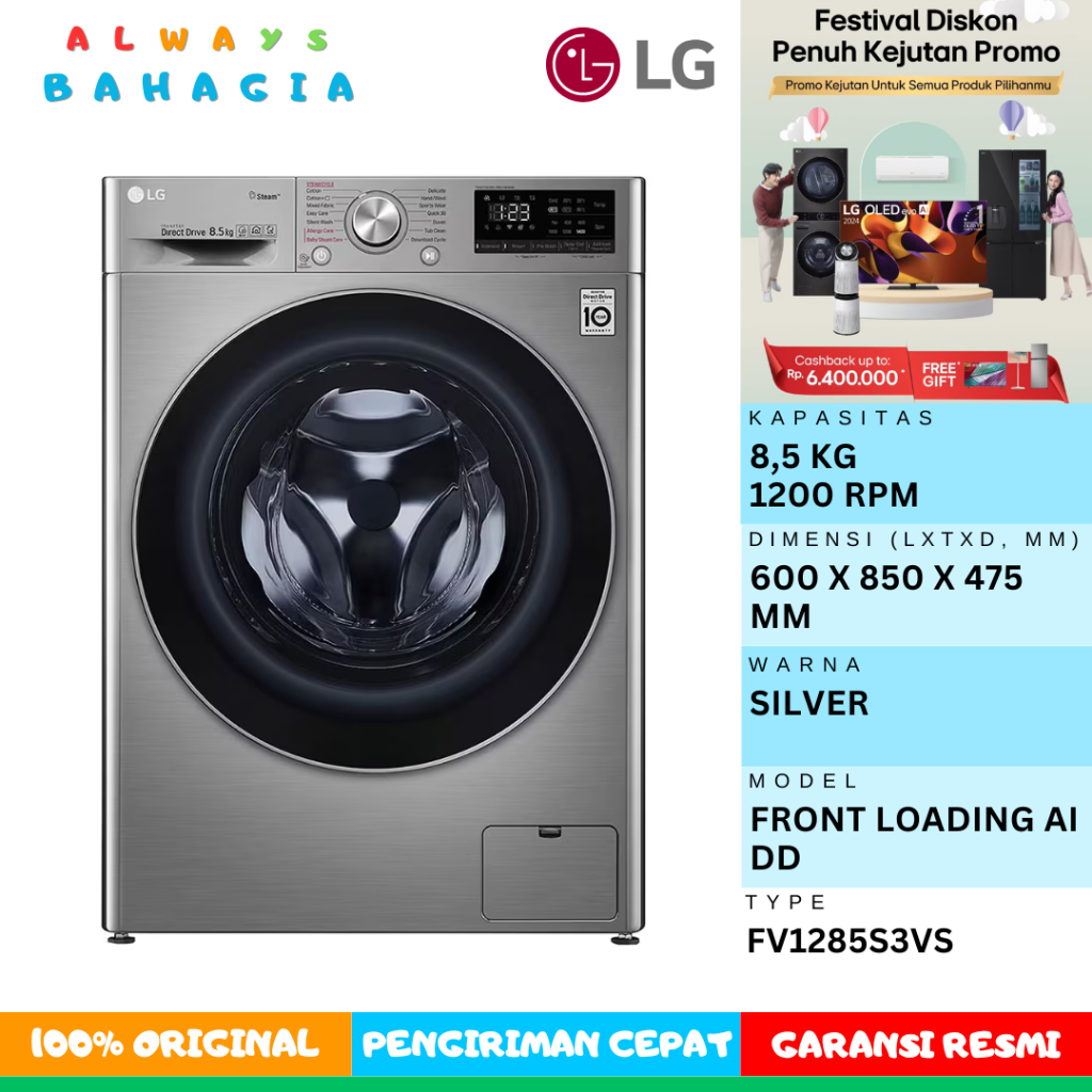 LG FV1285S3VS Mesin Cuci Front Loading 8,5 Kg Inverter Direct Drive