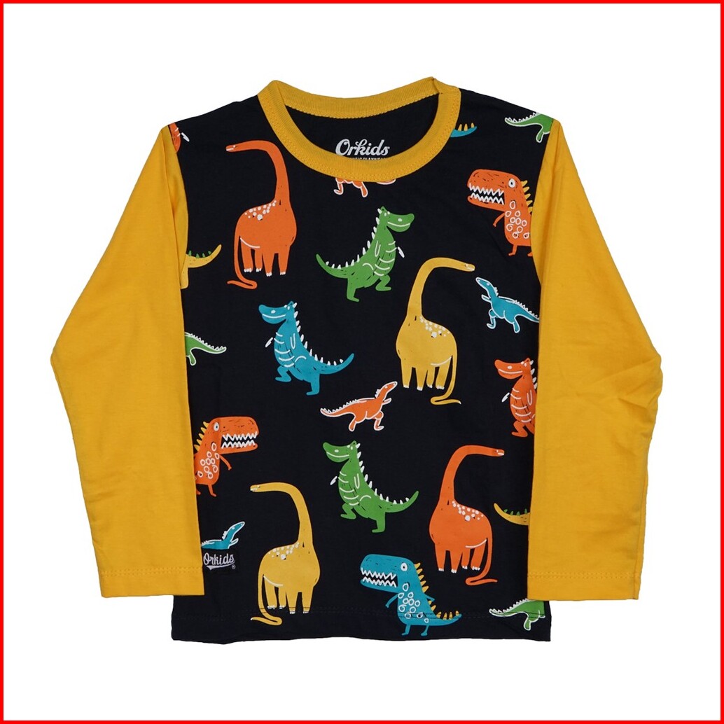 Orkids Piyama Anak Permepuan Umur 1-12 Tahun Telan Baju Tidur Dinodle Navy Yellow