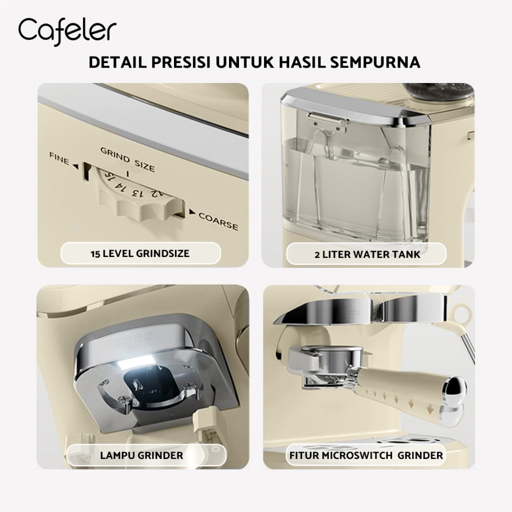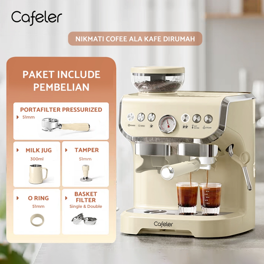 Cafeler Coffee Maker Espresso Mesin Single Heater Sistem Mesin Kopi Espresso Grinder 51MM