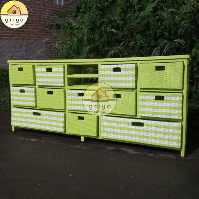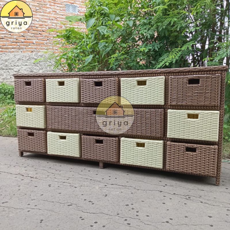 Lemari Rotan Sintetis Laci 15 Rak Buku Serbaguna Lemari Pakaian Plastik Rotan Sintetis Meja Tv Jumbo Lemari Pakaian