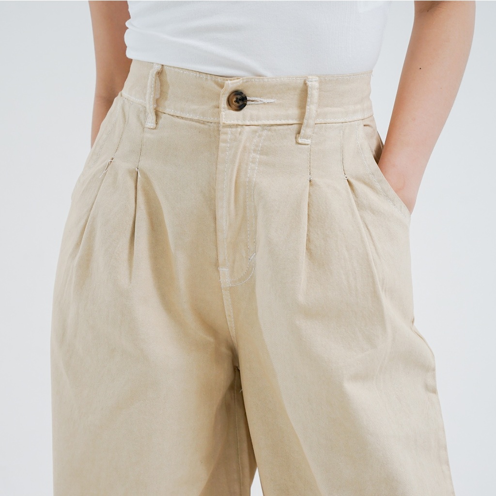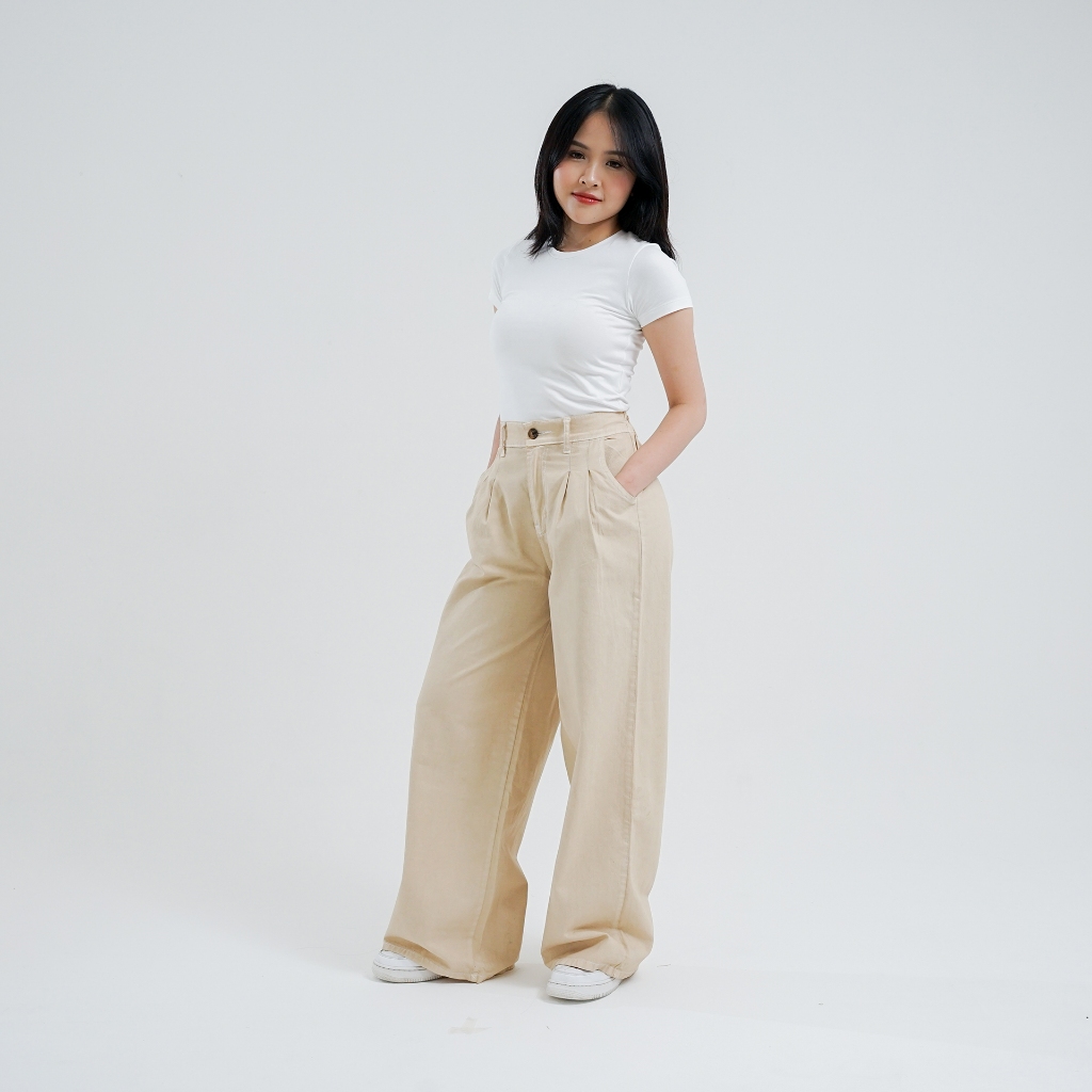 DLINE Celana Kulot Panjang Jeans Wanita Earth Tone Fit XXL Pinggang Belakang Karet Tiara Culotte