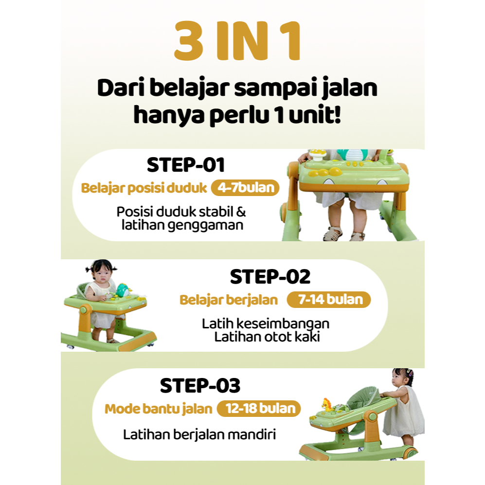 [Star] BEIGE Walker Bayi /Baby Walker/3 in1 Lipat Portabel Mainan & Mobil Usia 6-36 Bulan