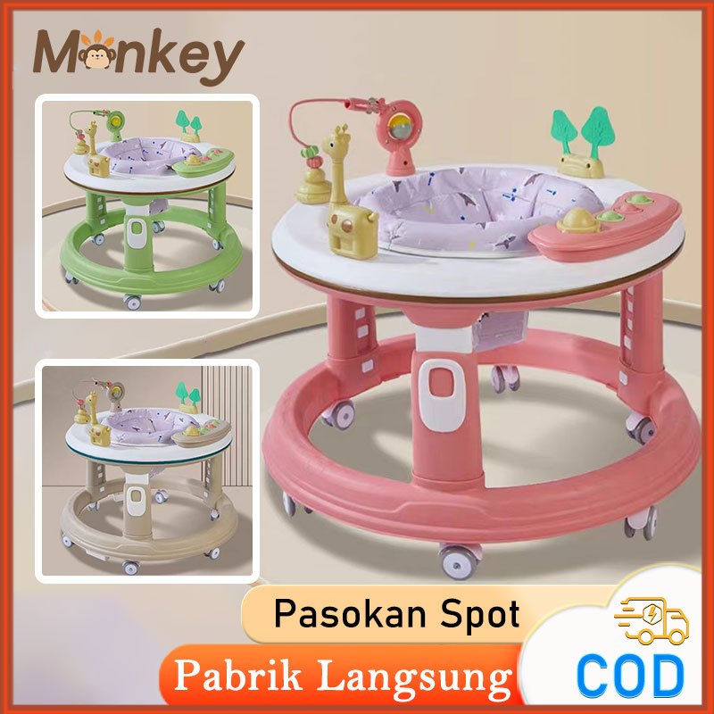 [Star] Monkey Walker Bayi dengan Musik dan Mainan, Bahan Plastik Tahan Lama untuk Usia 6-18 Bulan Rotasi 360 derajat