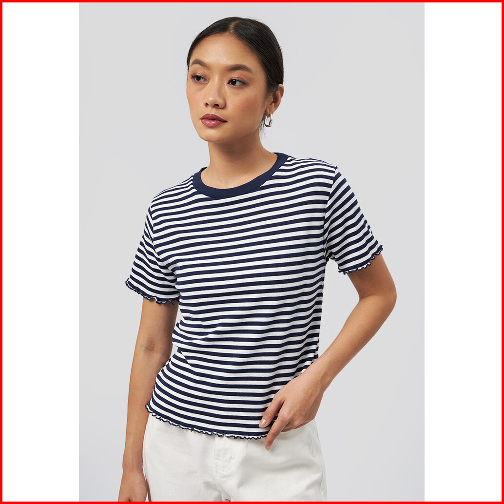 Executive Short Sleeve Stripes Rib T-shirt Navy