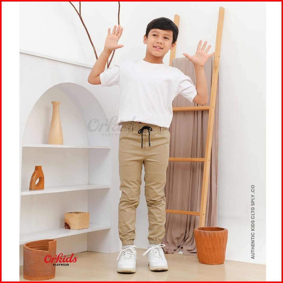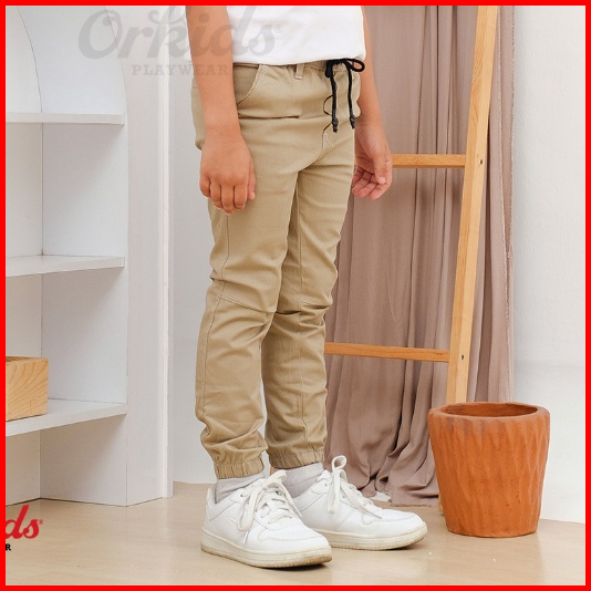 Celana Chinos Anak Laki-laki Panjang Joger Umur 10 Tahun Bahan Katun Pinggang Pakai Karet Onyk Cream