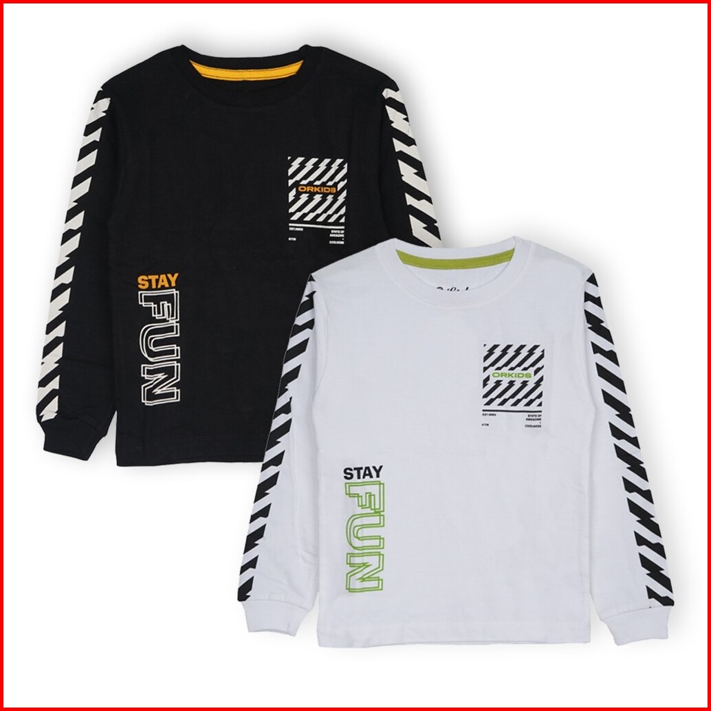 Orkids Kaos Anak Lengan Panjang Umur 1-12 Tahun Bahan Katun Combad 24s Oppwaiz Black