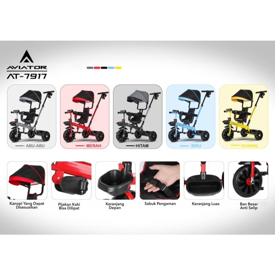 [Star] AT-7917 SEPEDA ANAK RODA TIGA AVIATOR AT-7917 + SEALTBELT + MUSIK / 1273 SEPEDA ANAK MURAH / SEPEDA ANAK BALITA USIA 1-5 TAHUN