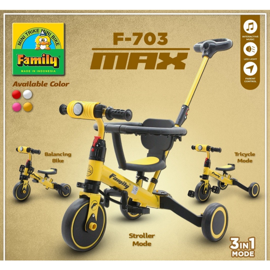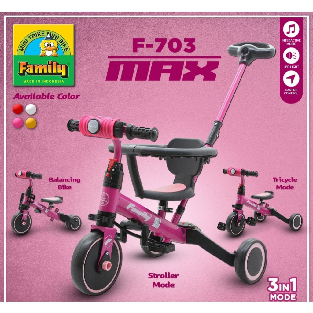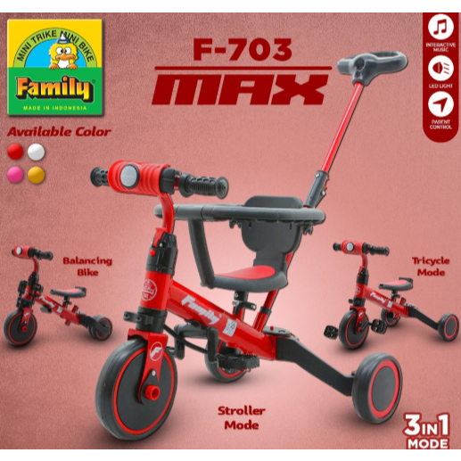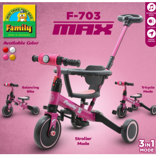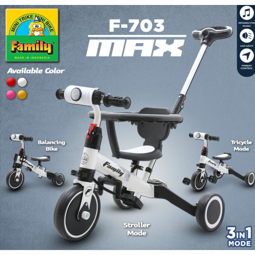 [Star] Family F703 Sepeda Roda Tiga Anak 3in1 Balance Bike Mode Dengan Lingkaran Pengaman