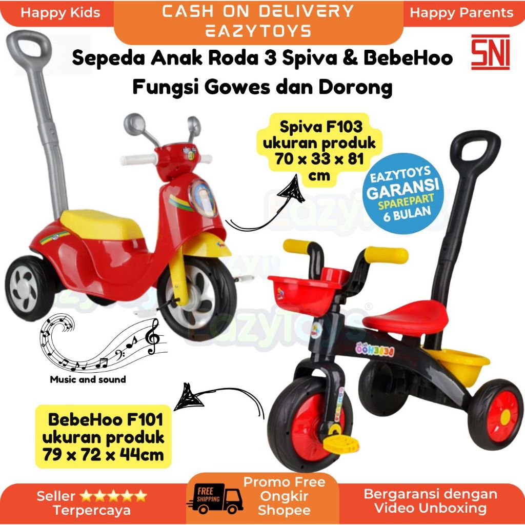 [Star] Sepeda Anak Roda 3 Tricycle PMB Spiva F103 Bebehoo F101 Sepeda Roda Tiga Fitur Musik dan Dorongan