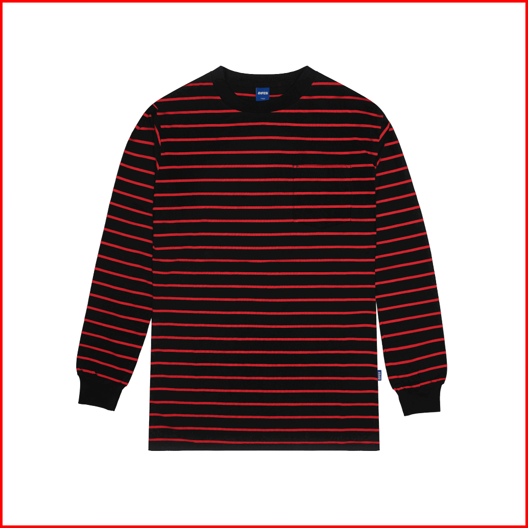 Difes Kaos Lengan Panjang Pria Garis - Garis