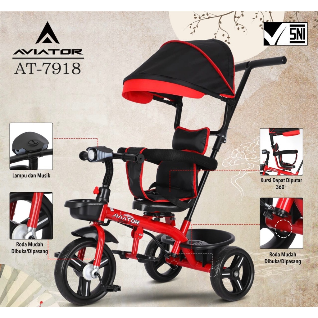 [Star] Sepeda Anak Roda Tiga Exotic ET1261-1 AVIATOR AT7711 AT7717 AT7918 Musik Lampu AT 7713 7717 7918