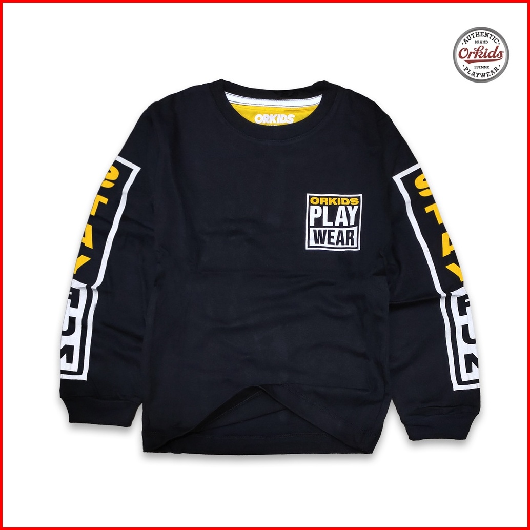 Kaos Anak Lengan Panjang Anak Laki Laki Orkids Baju Panjang Atasan Anak 1-12 Tahun Vizion Black