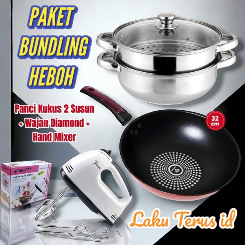 LT 037 Paket Bundling Panci Kukus 2 Tingkat Hand Mixer Wajan Diamond 32cm