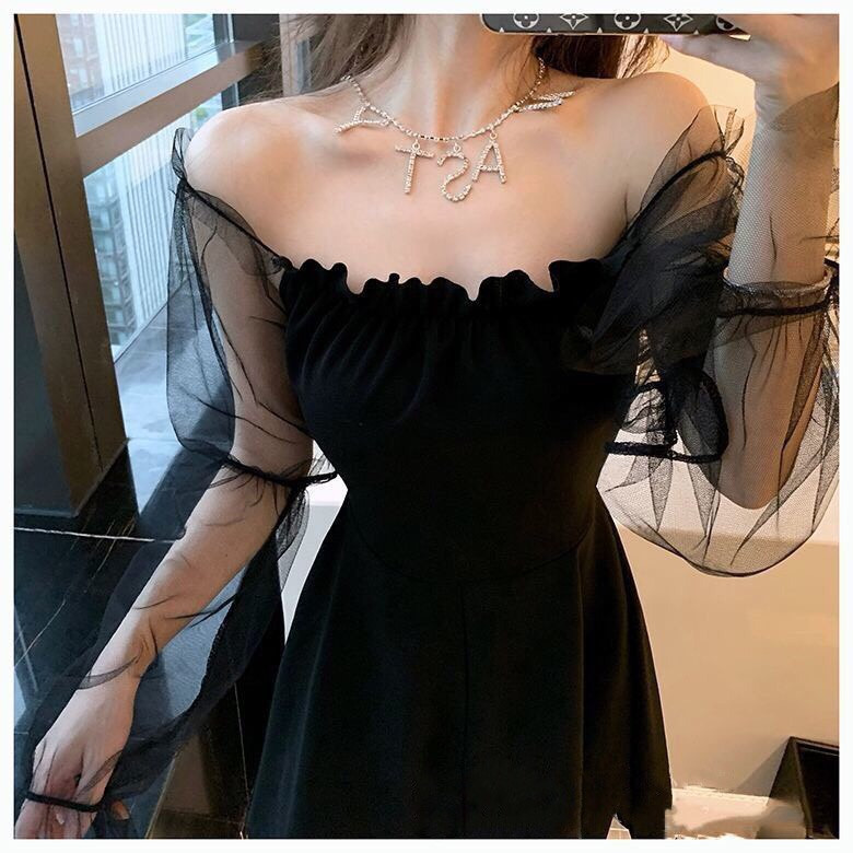 Baju Korean dress dress lengan panjang lace korean style mini dress hitam wanita kekinian kondangan simple elegan cantik