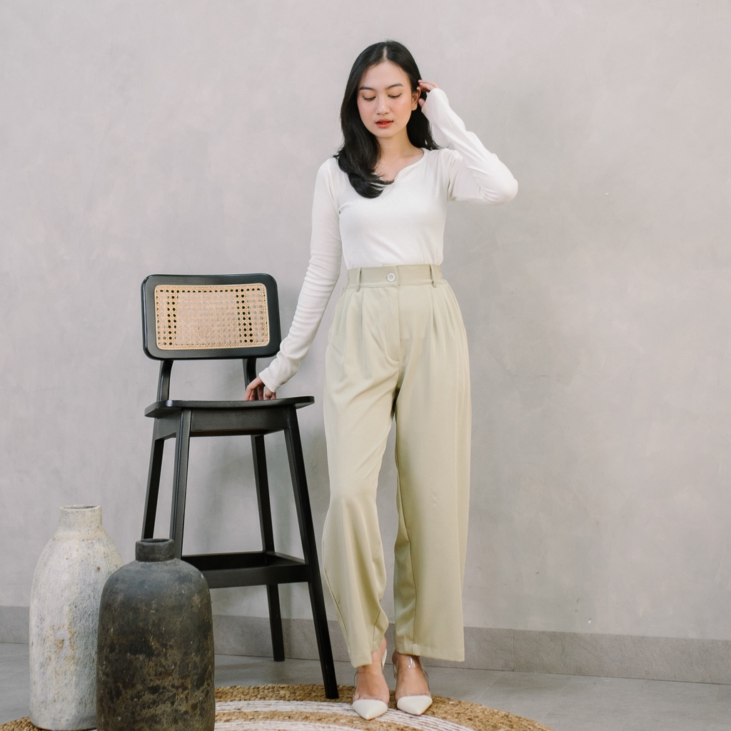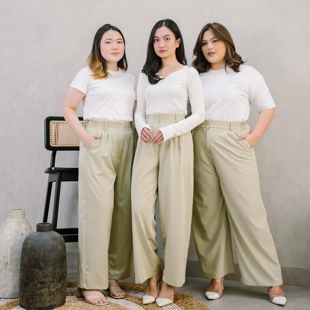 IE.DEMODE Aerum Celana Panjang Wanita Kulot Kerja Kantor Jumbo Big Size Pants Bahan Allya Lime