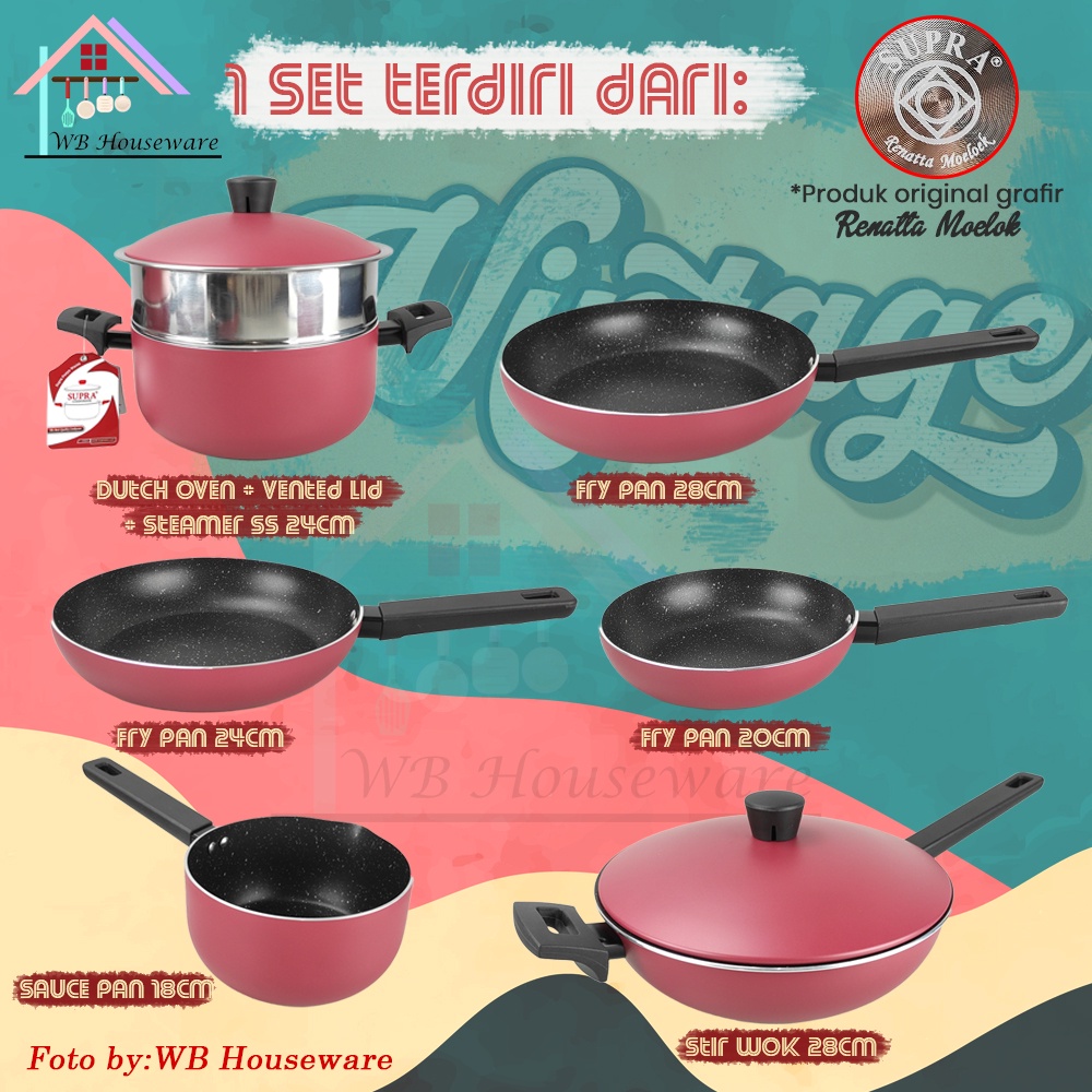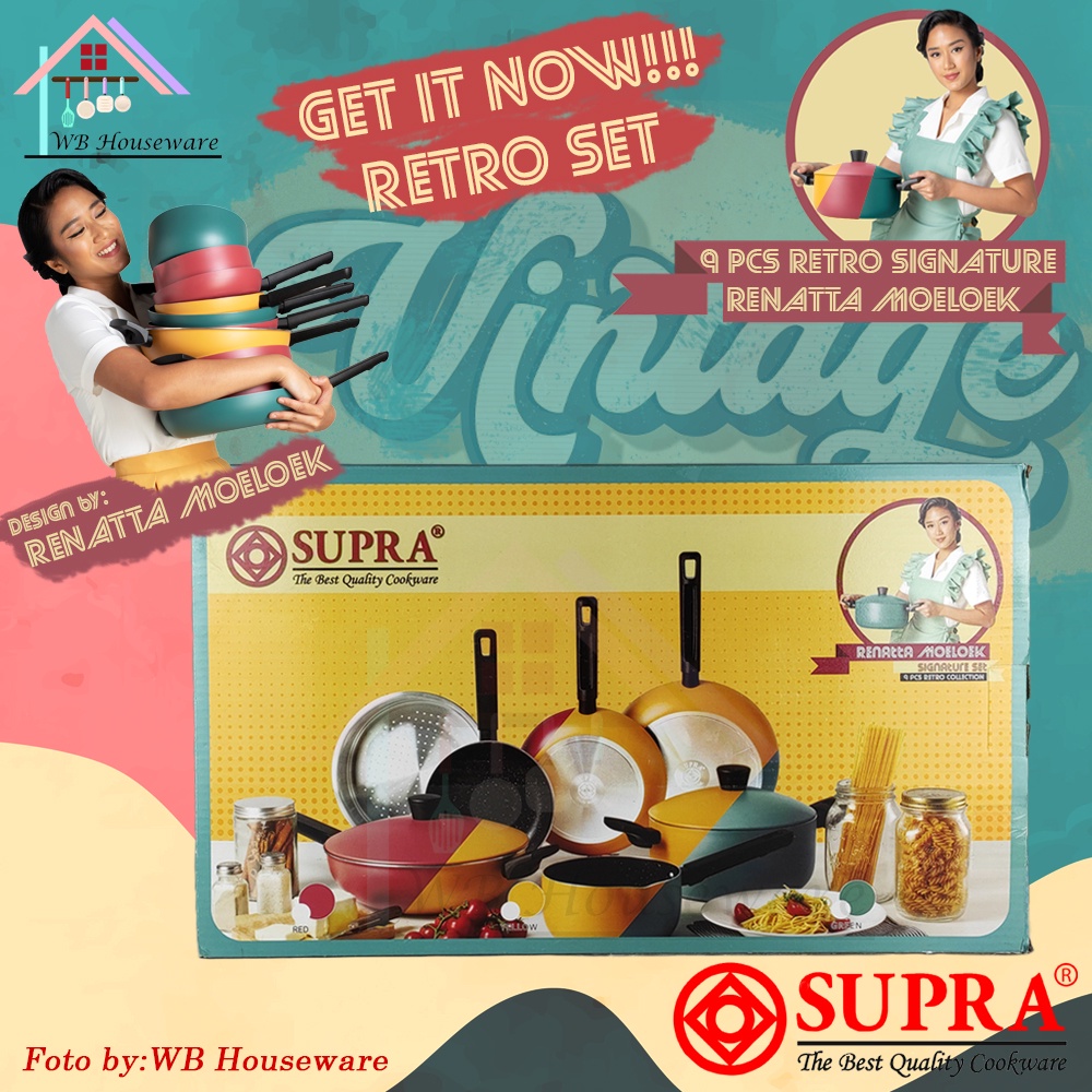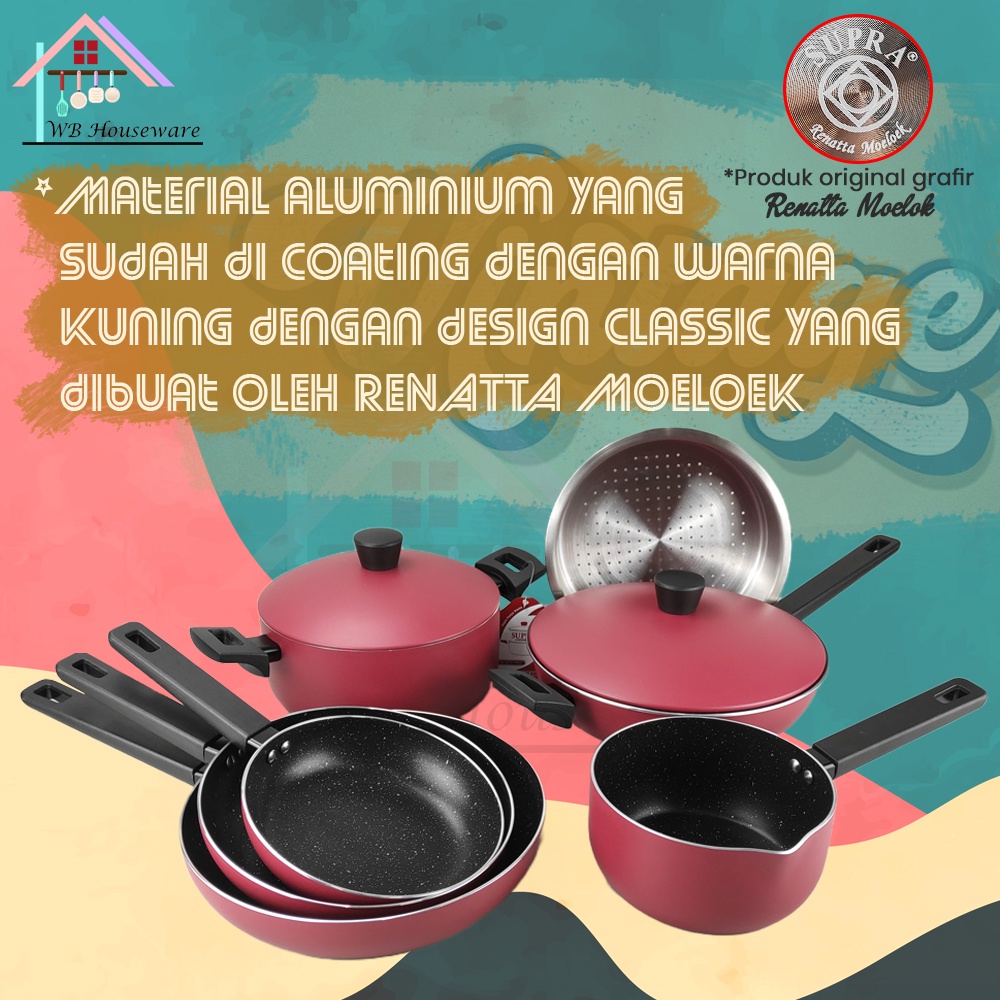 SUPRA 9pcs panci set anti lengket alumunium retro merah by renatta moeloek / 9pcs cookware set new series RETRO