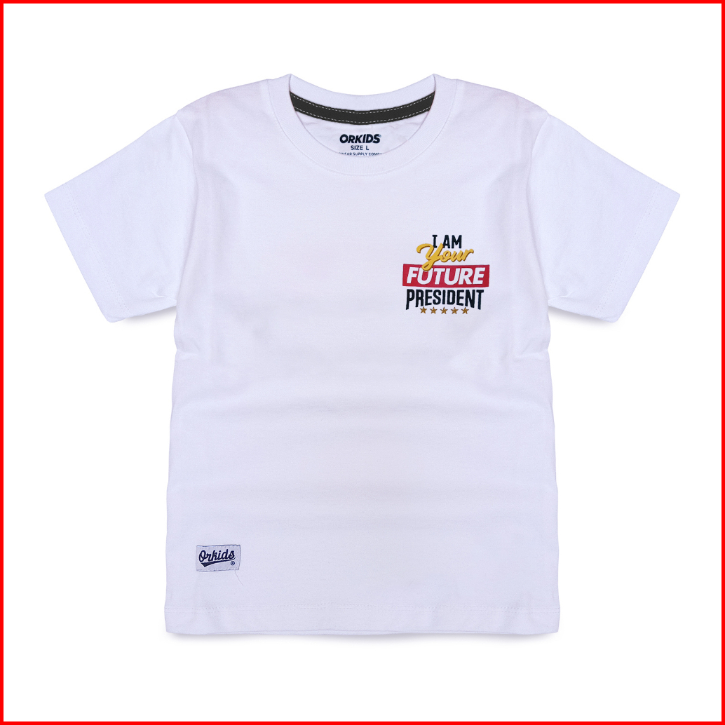 Kaos Anak Laki-laki Baju Distro Atasan Anak Cowok Lengan Pendek Your President White