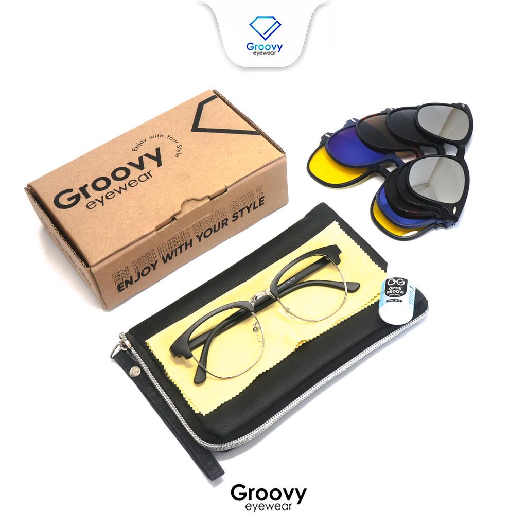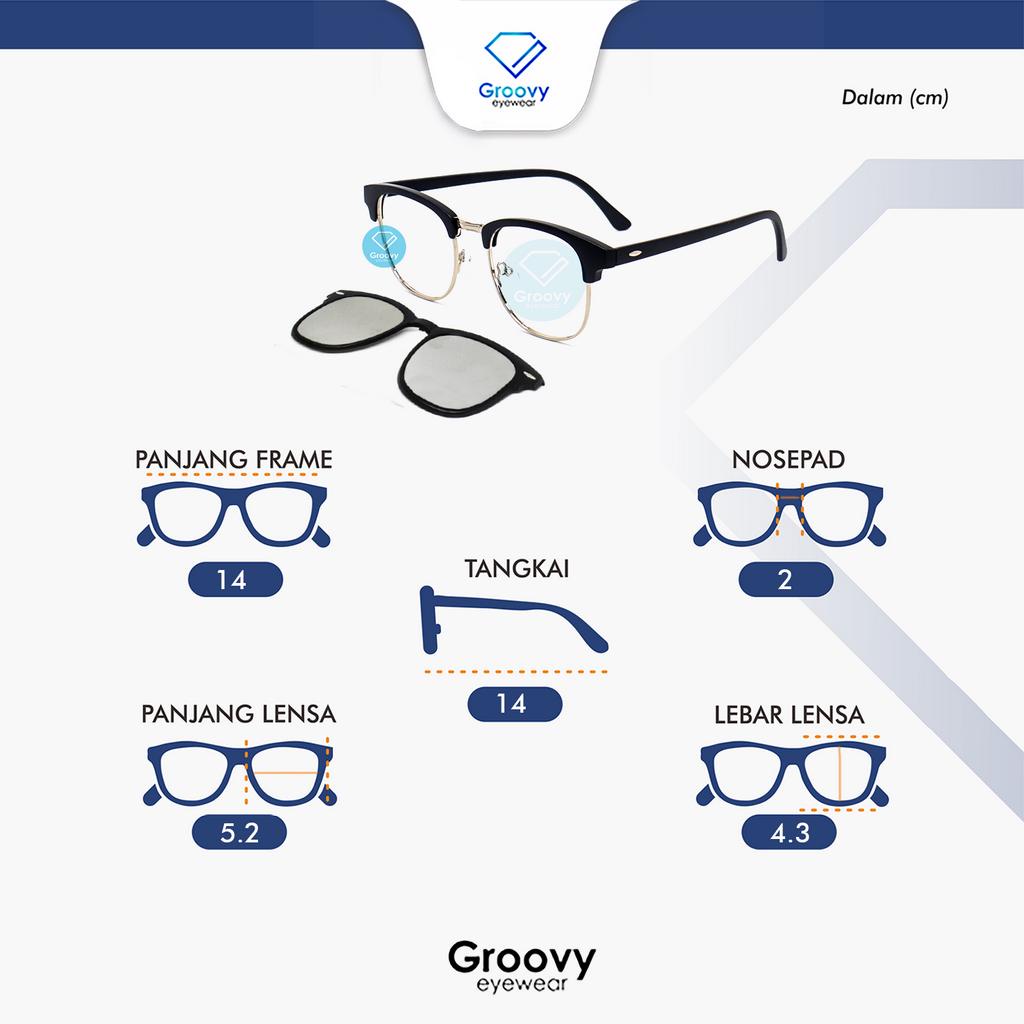 Groovy Eyewear - Kacamata Dylan Clip On Club Master Lensa Minus Polarized Hitam Magnet Sunglass