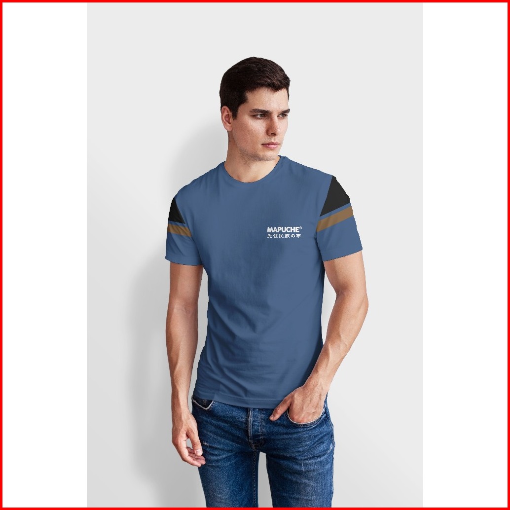 Mapuche Kaos Pria T Shirt Stripe Denim