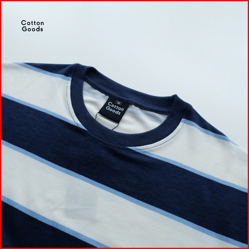 Cotton Goods Kaos Oversize Motif Salur Rigel Bw Navy Blue