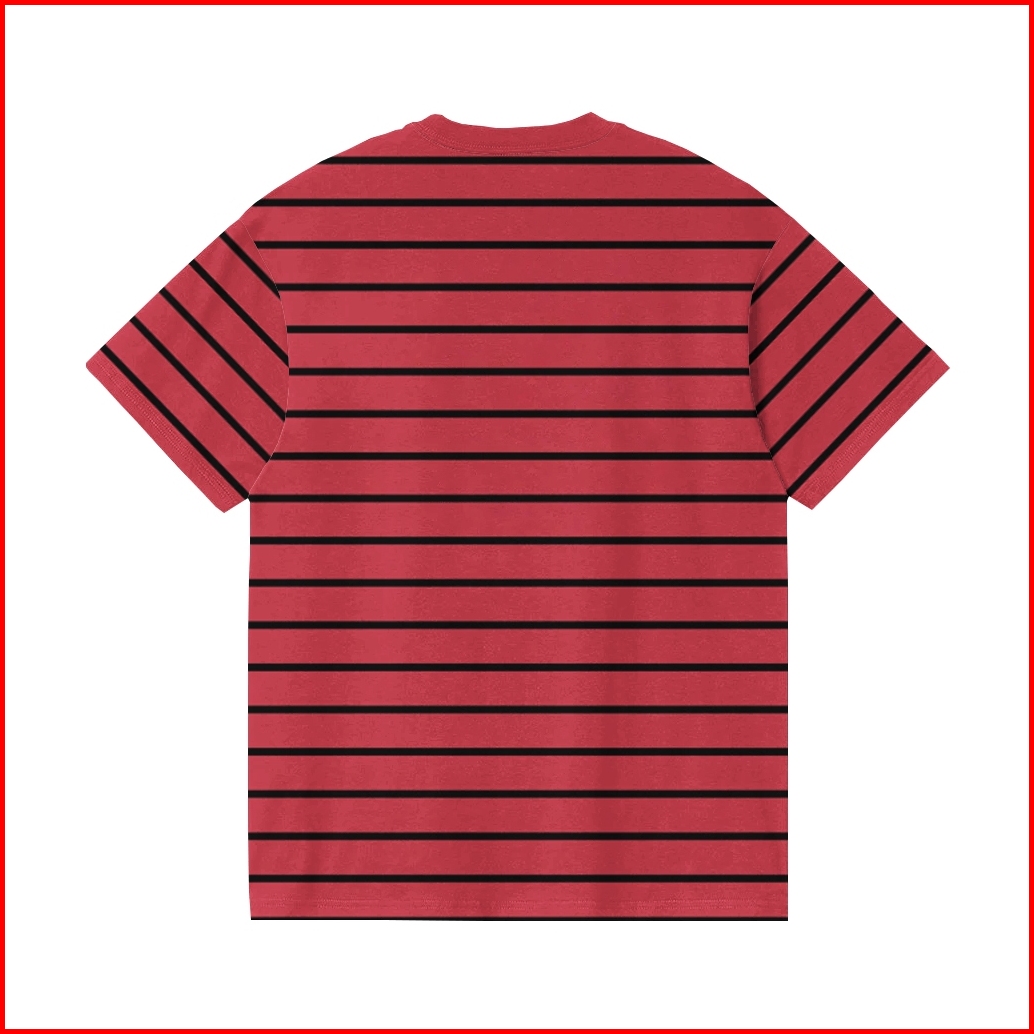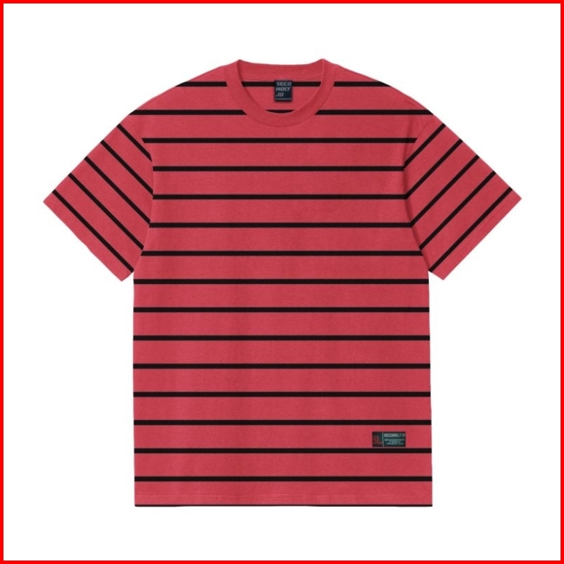 Secondly.id Kaos Salur Lengan Pendek Tshirt Stripe Merah Hitam 24s